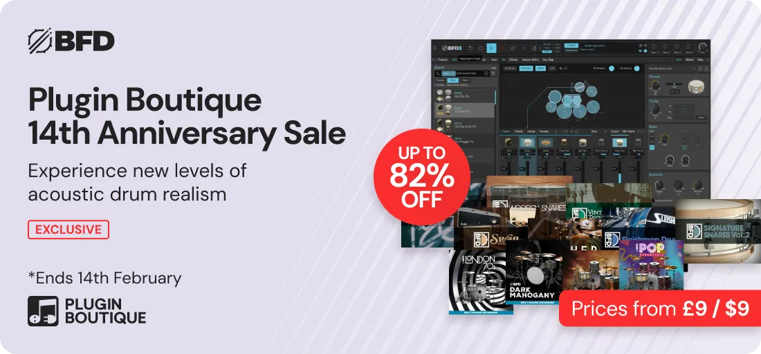 Forums › DEALS › Virtual & Physical Music Gear Deals › BFD x Plugin Boutique 14th Anniversary Sale (Exclusive) – Up To 82% OFF