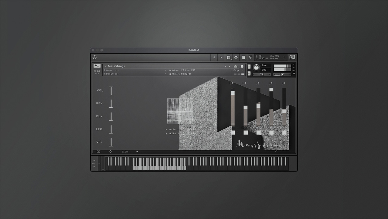 MASS is a big hybrid string library for Kontakt — where real ensemble recordings collide with analog saturation and modern synths.