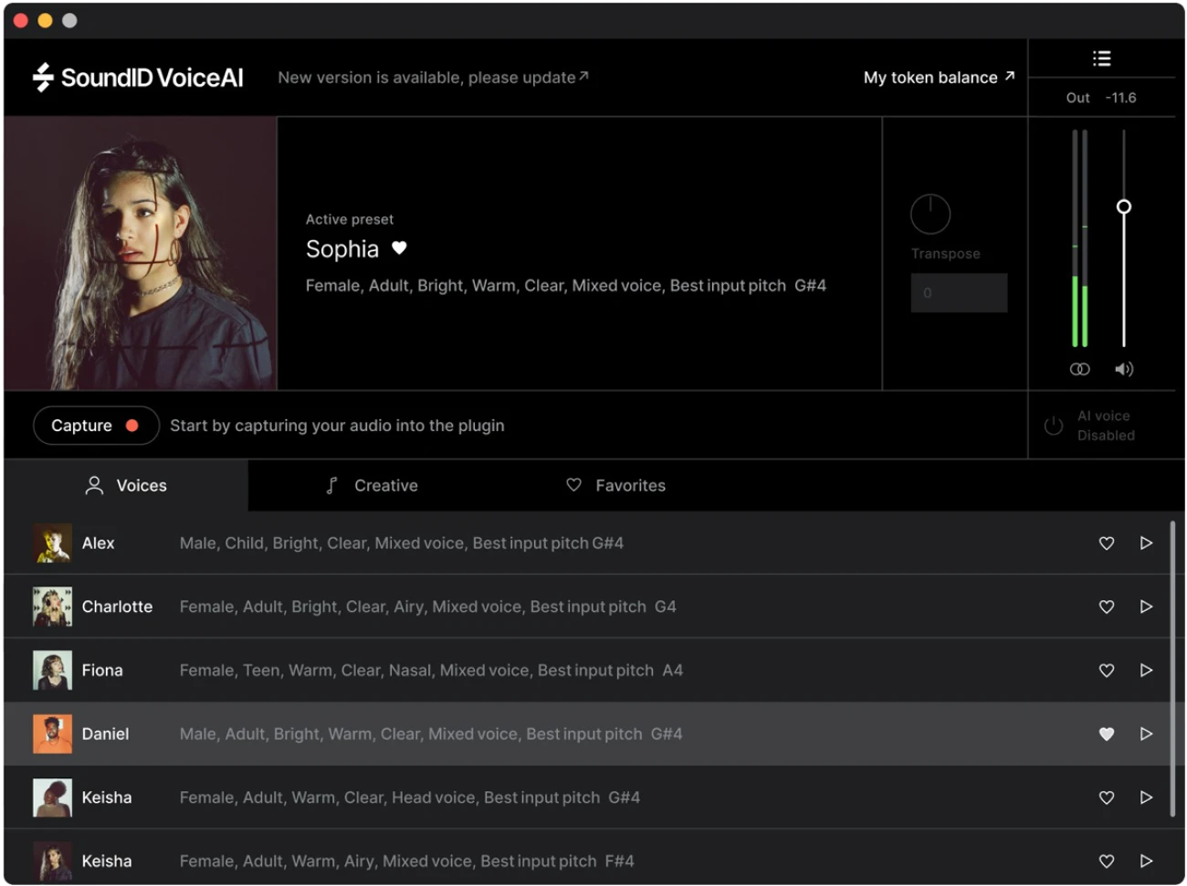 Enhance vocal track production and use AI to transform voice recordings instantly without leaving the DAW or studio. Maintain workflow without interruptions. The plugin is compatible with any DAW that supports audio plugins.28 High-Quality Voice Models: Change a voice recording into a realistic singing voice from our catalog. The focus is on quality, and new models will be added regularly.