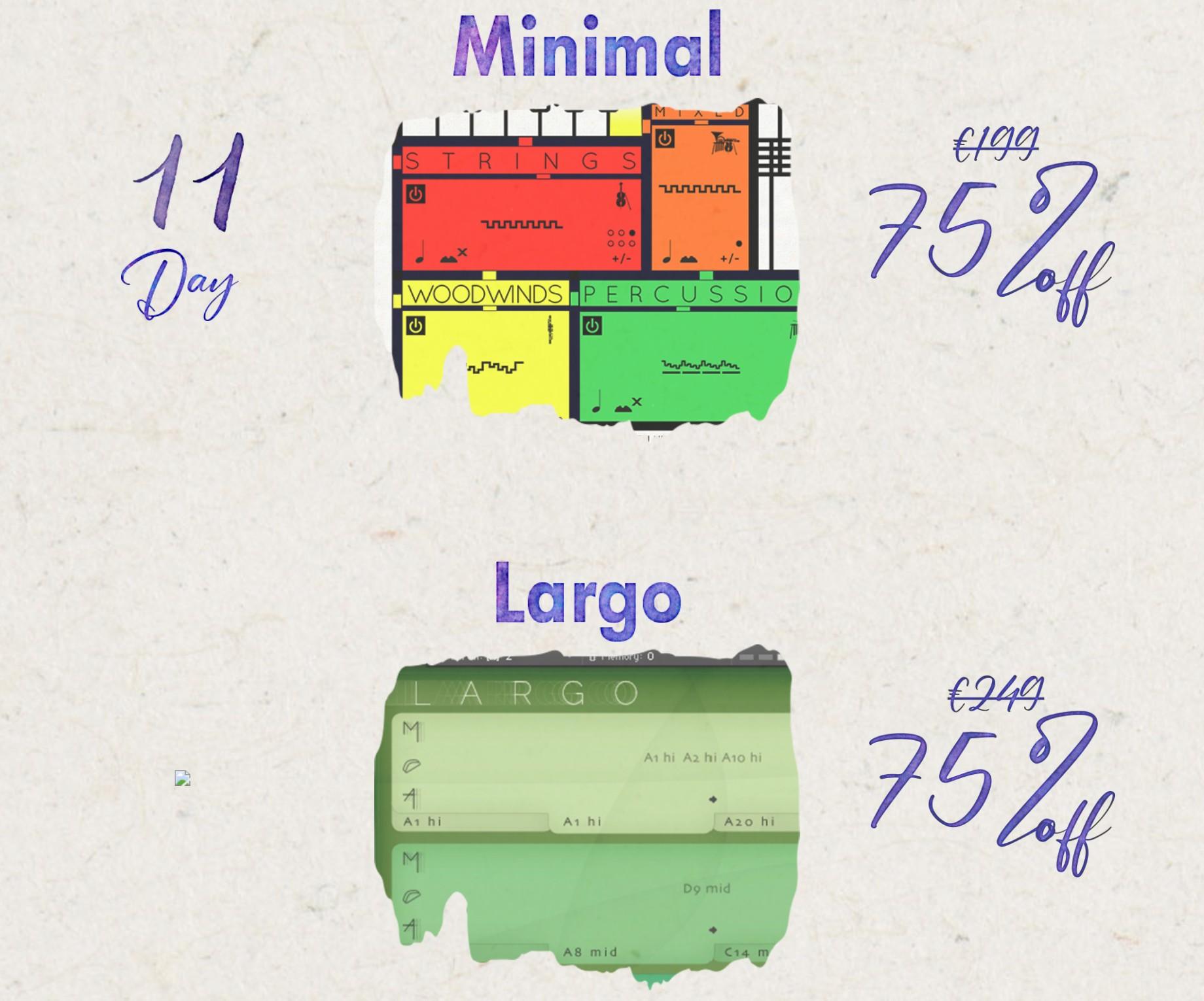 Forums › DEALS › Virtual & Physical Music Gear Deals › Sonokinetic 12 Days of Christmas Day 11: Minimal and Largo 75% off