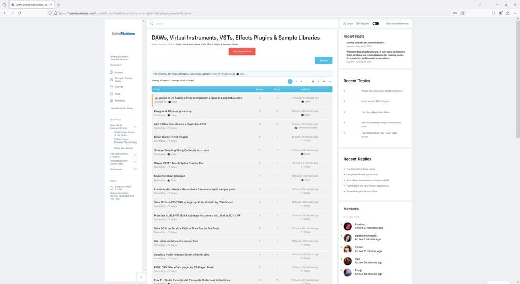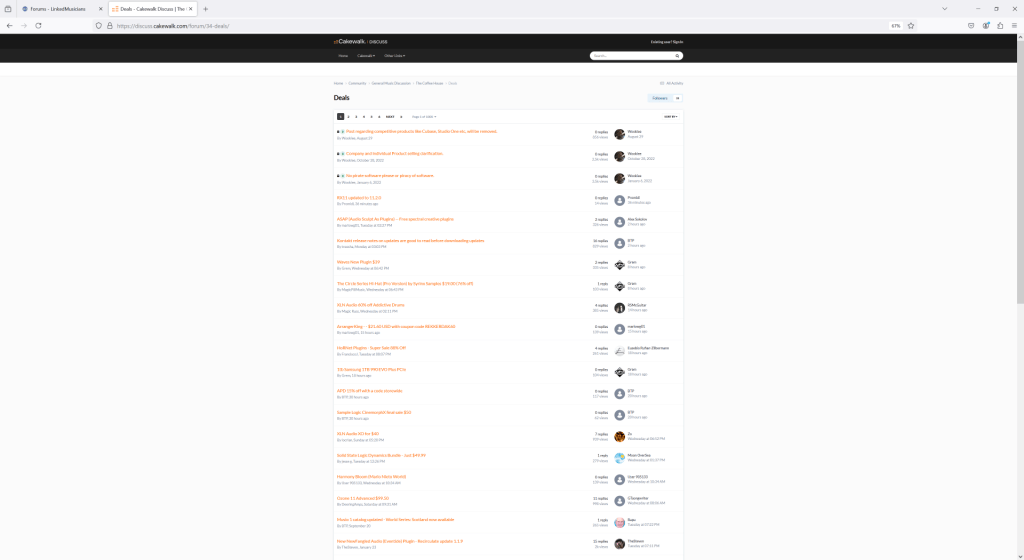 Most of us were avid users of the Cakewalk Deals subform, drawn in by cclarry’s prolific deals posts. Most of us rarely ventured beyond that subforum, but those who did tended to go to two different places: the Coffee House and the Songs Forums. Most often, we returned to the Deals subforum page directly, either through our browser remembering the page or a bookmark; not by entering from the Cakewalk Forums home page as we now do with LinkedMusicians. That sounds like a small detail, but it’s significant from a user experience standpoint and it’s caused me to think about how to make LM have a better user experience for those users accustomed to focusing primarily on the Cakewalk Deals page. Of course, one approach is to tell everyone to start bookmarking the LM Deals Forum, which I did, but such recommendations are rarely enough to change behavior. The LM Deals Forum is much deeper than Cakewalk Deals subforum. We break down deals into software, physical musical instruments / hardware, non-music related items (e.g., video editing, games, etc.), and services. Our beloved Deals Guru cclarry and I discussed all of this before I created the site and we both agreed that a better taxonomy would make for a far superior user experience than what exists at Cakewalk Forum — which reflects the company agreeing to bolt a Deals subforum unto their Coffee House at Larry’s request years ago. This is also reflected in the Deals subforum being completely invisible on the Cakewalk Forums home page — it’s literally not there or even referenced there.